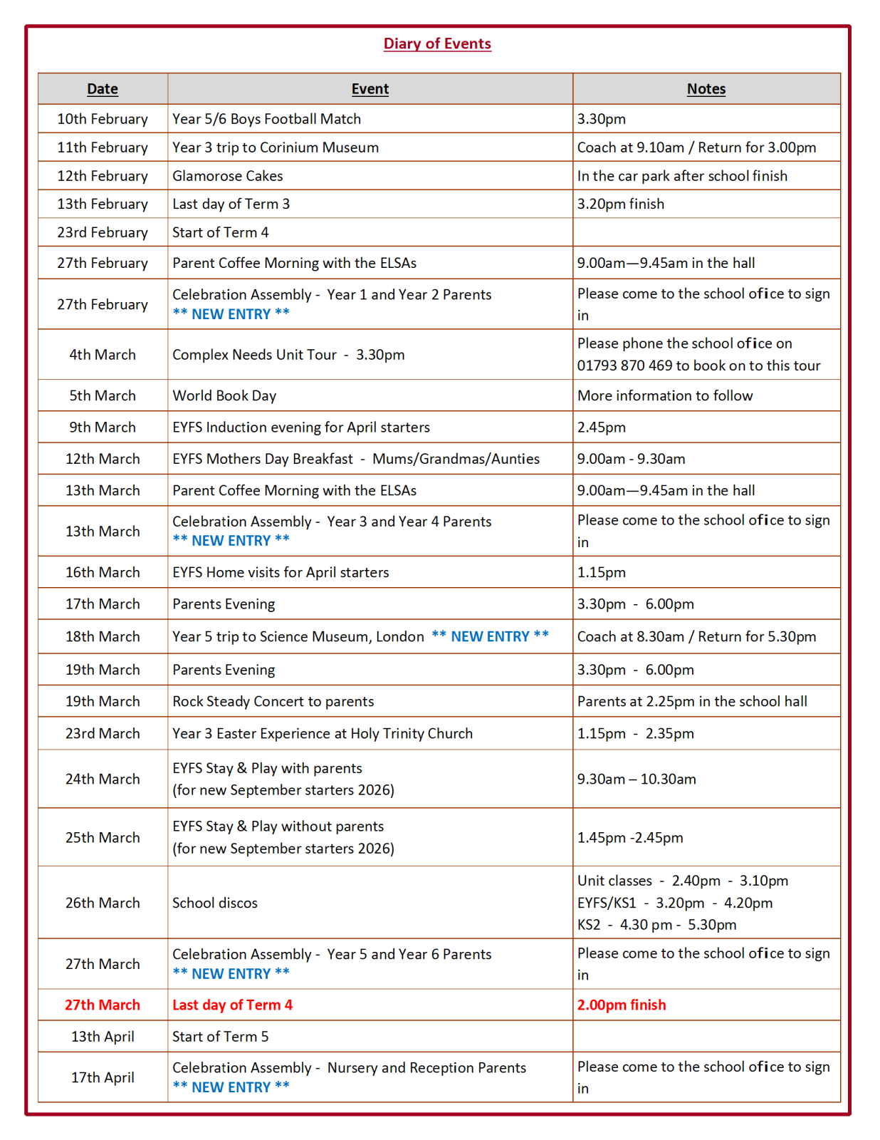 Westlea School News & Notices