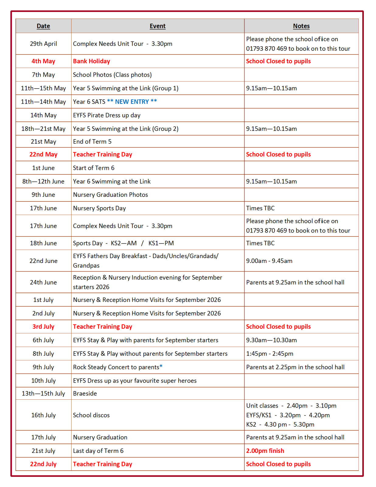 School Calendar