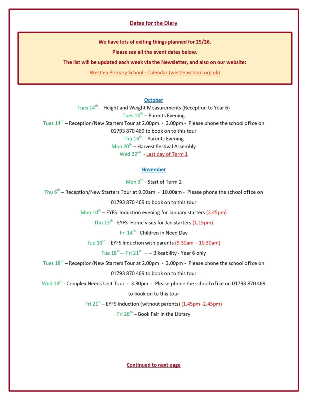 Westlea School News & Notices 10.10.2025