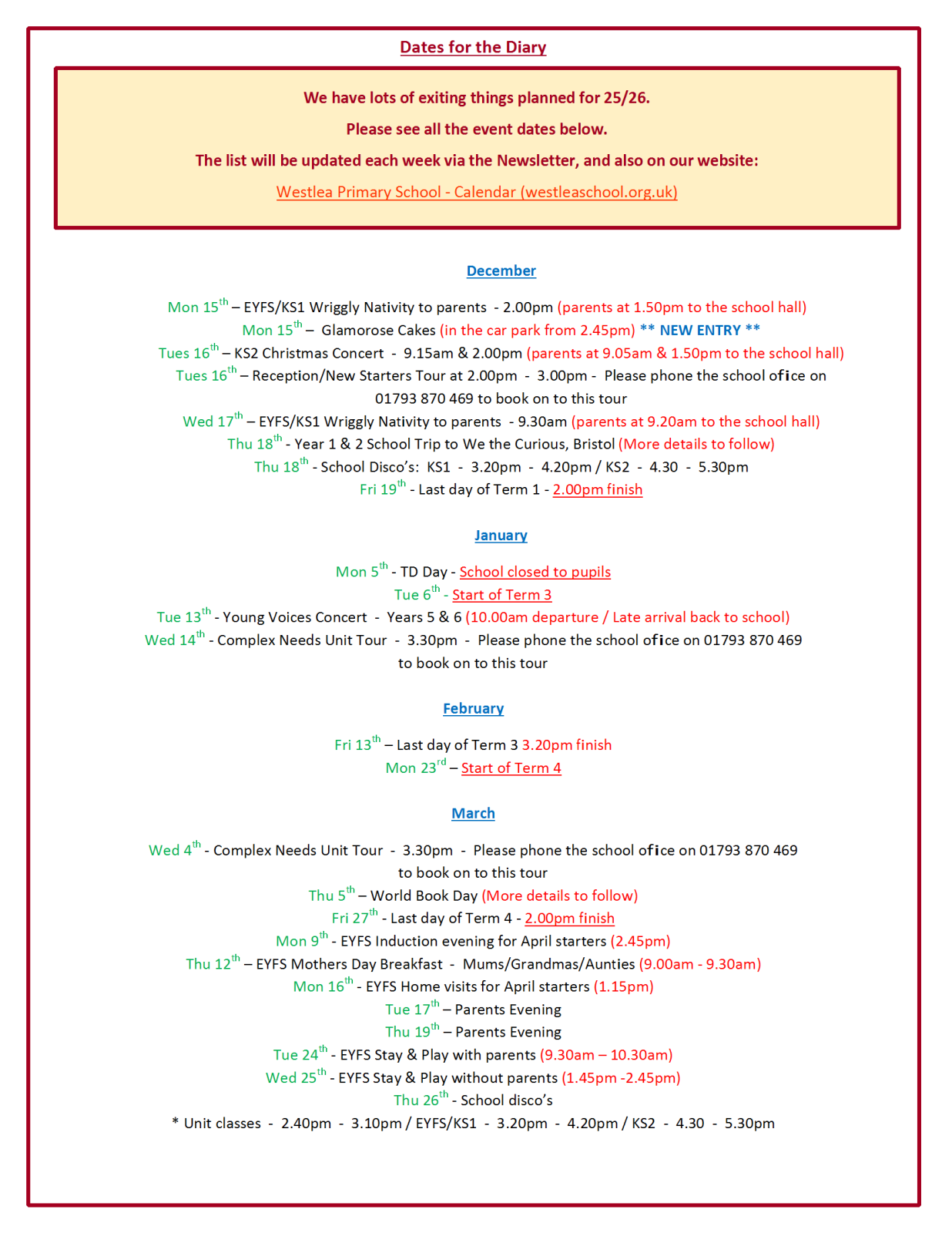 Westlea School News & Notices