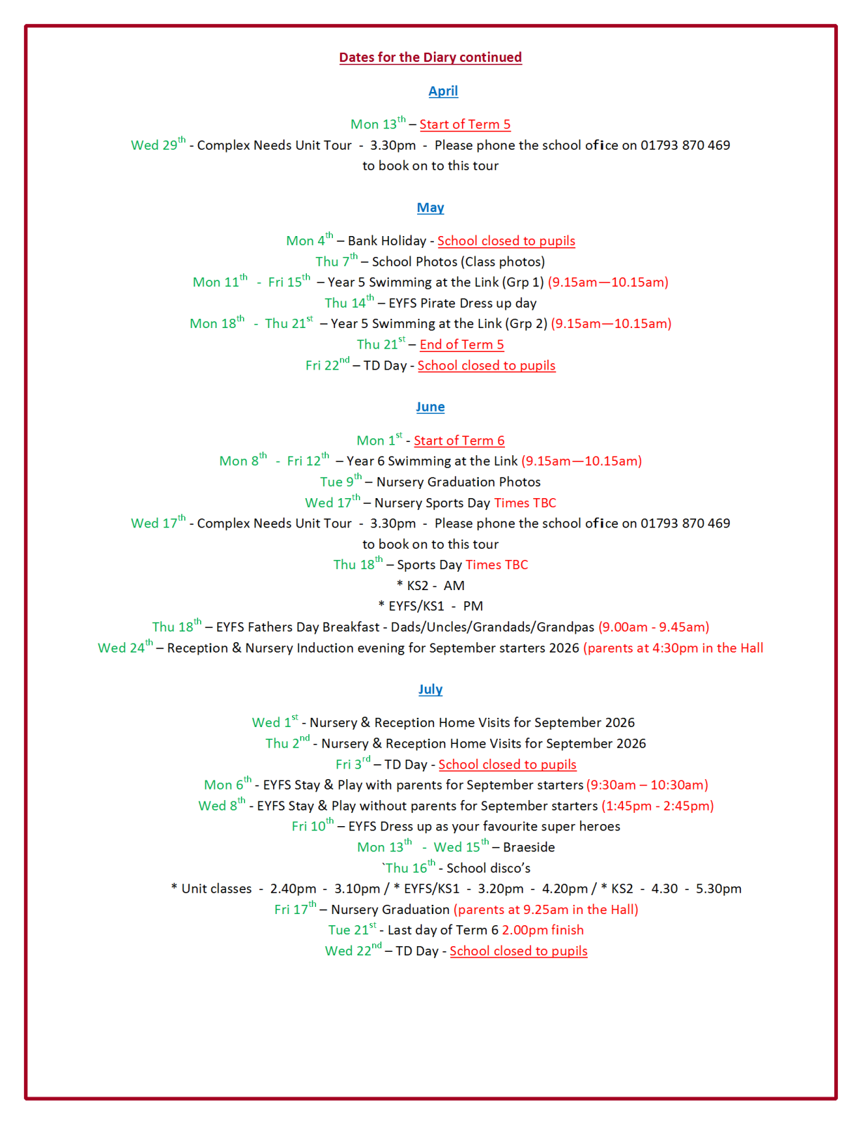 Term Dates