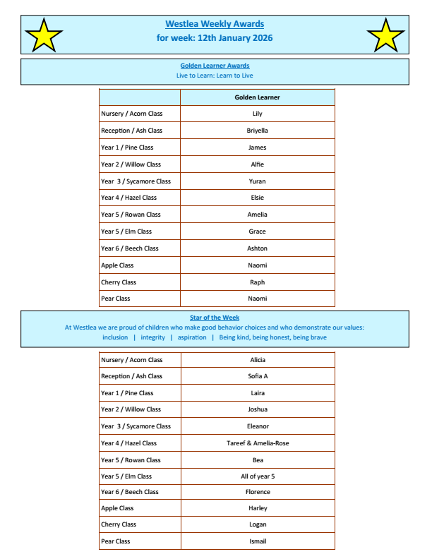 Westlea School Newsletter 16.01.2026