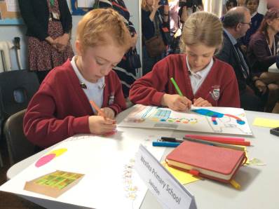Siena and Annabelle travelled by train to Bristol, where they met up with various other schools that are part of the programme. They met authors Cressida Cowell (How To Train Your Dragon) and Malorie Blackman (Pig Heart Boy), who spoke about their love of reading and what their dream library would look like. They were then given the opportunity to design their own dream library - this included a swimming pool (with waterproof books), fairy lights, a reading den inside a tree trunk, and a shelf dedicated to each author.